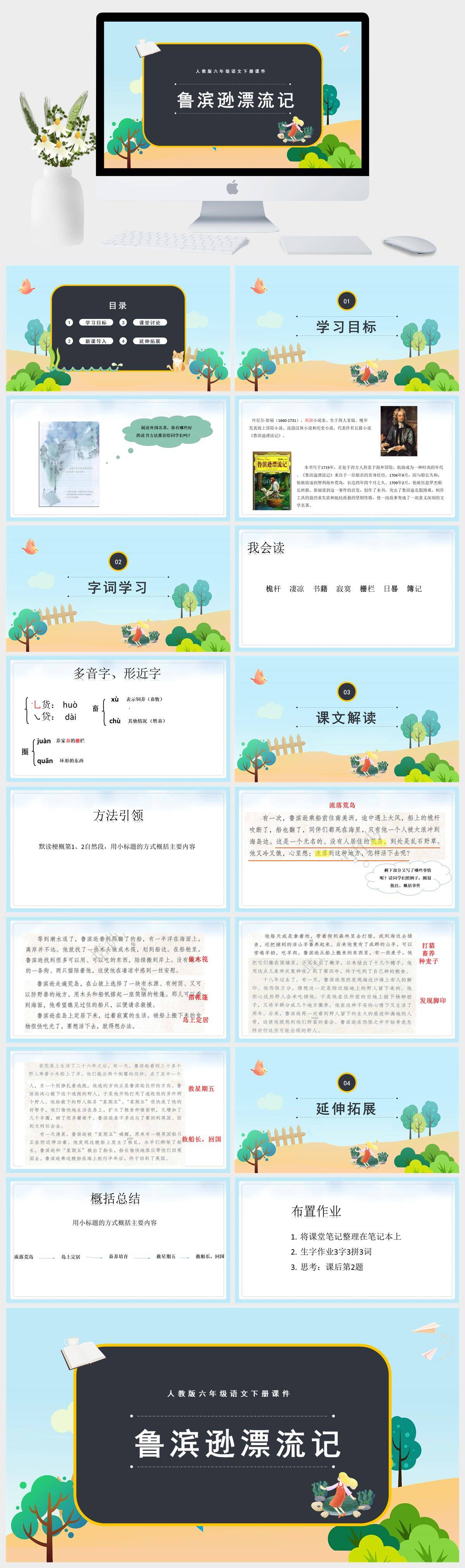 HKYW5767-人教版六年级语文下册课件第2课时鲁滨逊漂流记PPT模板成品课件PPT