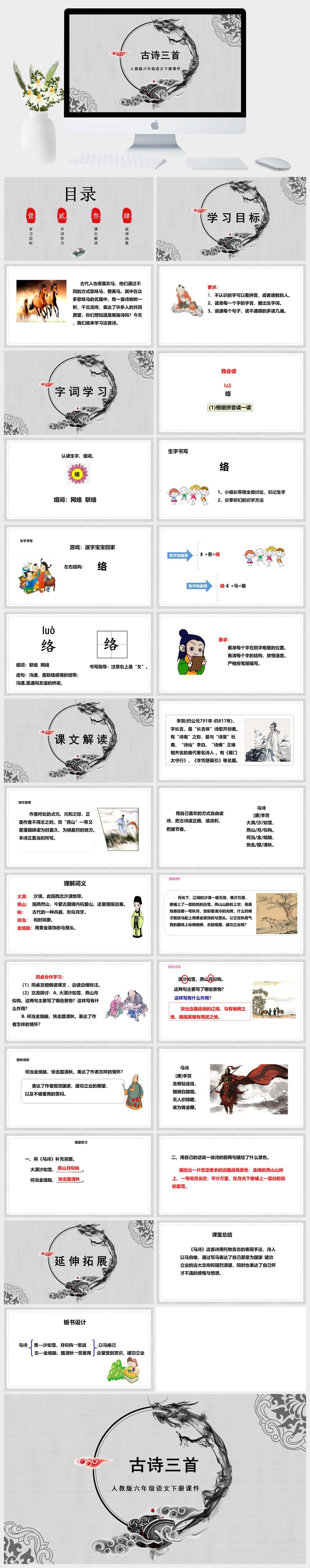 HKYW5770-人教版六年级语文下册课件第10课第1课时古诗三首PPT模板成品课件PPT