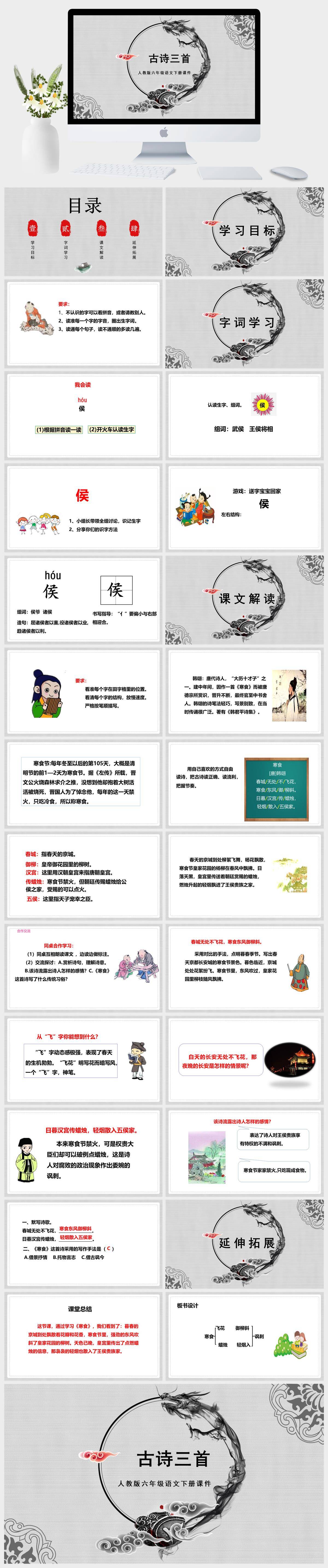 HKYW5771-人教版六年级语文下册课件第3课第2课时古诗三首PPT模板成品课件PPT