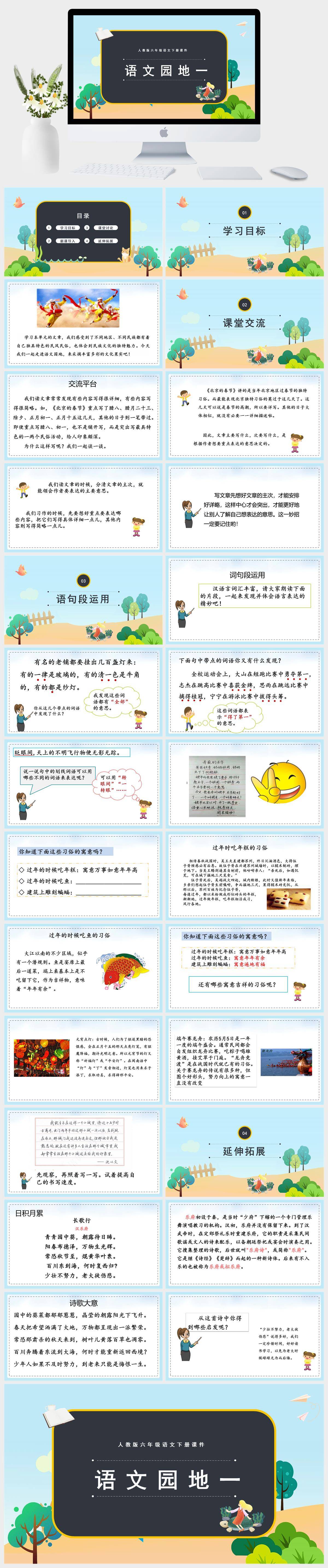 HKYW5773-人教版六年级语文下册课件第一单元语文园地PPT模板成品课件PPT