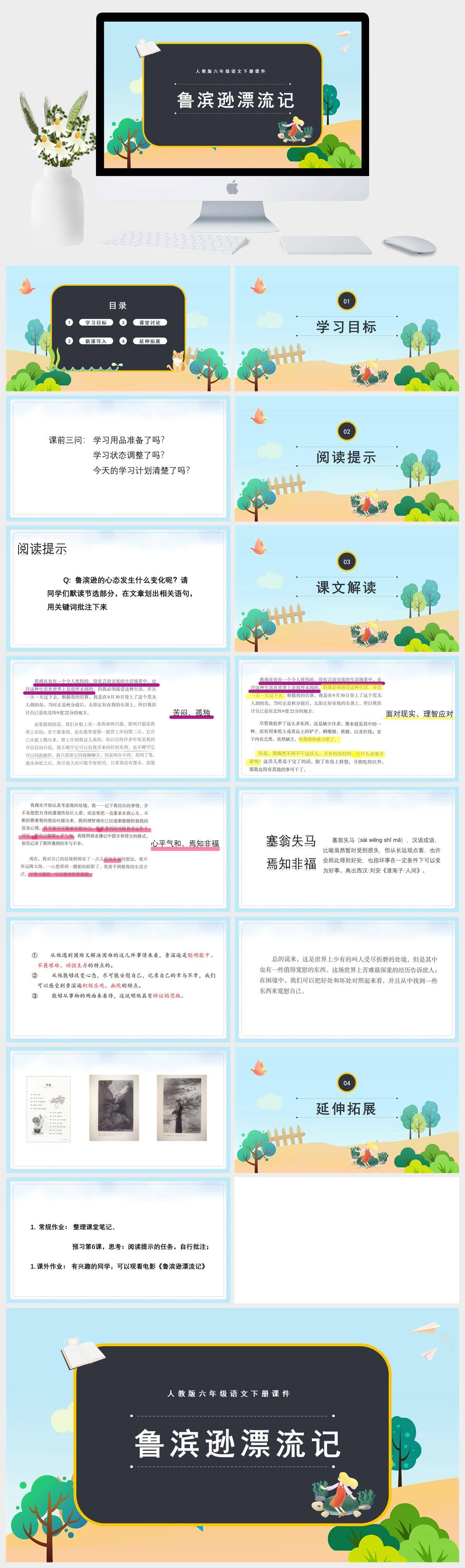 HKYW5779-人教版六年级语文下册课件第3课时鲁滨逊漂流记PPT模板成品课件PPT