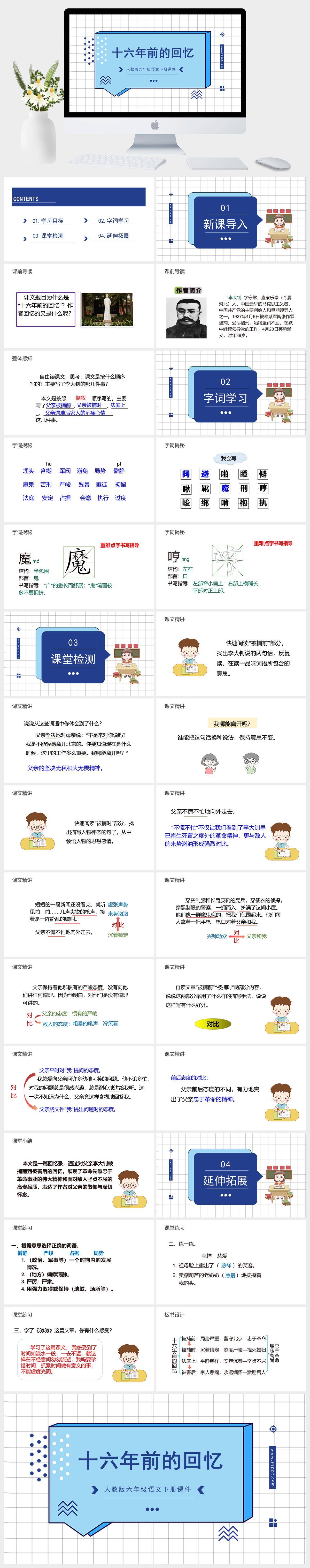 HKYW5822-人教版六年级语文下册课件十六年前的回忆PPT模板成品课件PPT